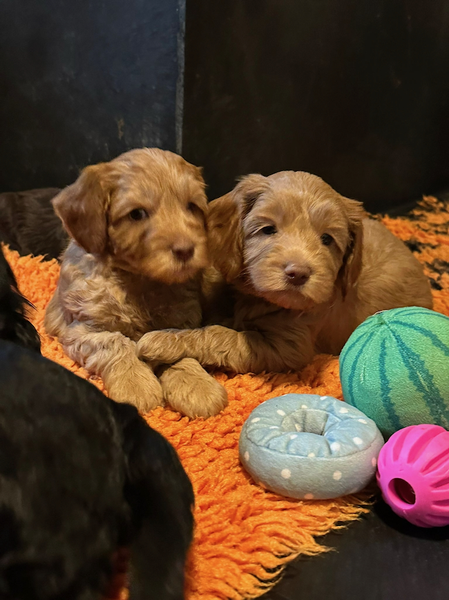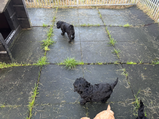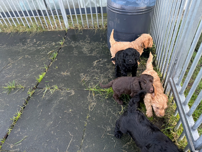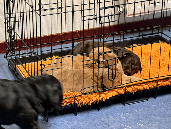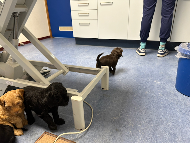Afgelopen woensdag zijn alle pups gekeurd, ingeënt en gechipt. Zoals verwacht zijn ze allemaal goedgekeurd. De reis naar de dierenarts en alle prikken ondergingen ze zeer voorbeeldig. Tijdens het schrijven spelen de pups voor het eerst in de tuin. De meeste foto’s en films daarvan zullen later via TransferNow worden gedeeld. Een aantal pups vinden het best koud zodat wij ze maar kort buiten laten spelen.